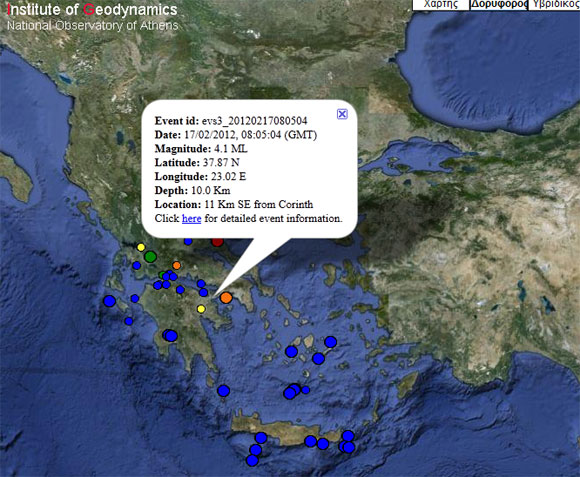 Σεισμός μεγέθους 4,1 βαθμών της κλίμακας Ρίχτερ σημειώθηκε στις 10:05 το πρωί της Παρασκευής στο θαλάσσιο χώρο ανοιχτά της Κορίνθου, σύμφωνα με το Γεωδυναμικό Ινστιτούτο του Εθνικού Αστεροσκοπείου Αθηνών.