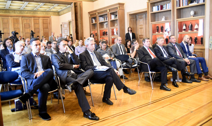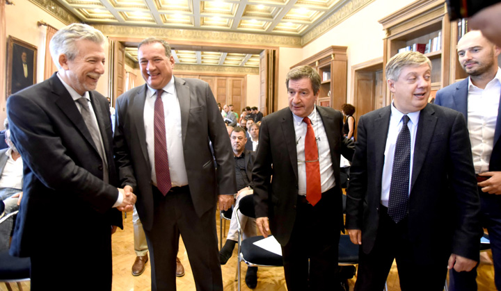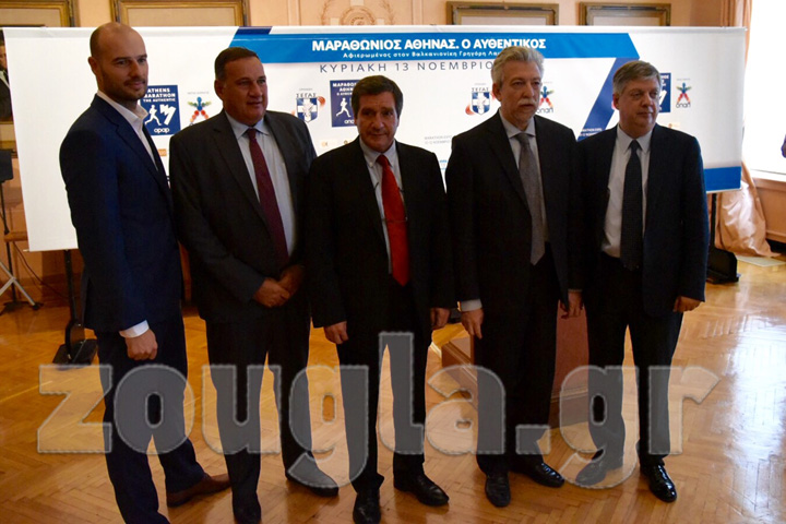 Πρώτος τον λόγο πήρε ο οικοδεσπότης της εκδήλωσης, ο Δήμαρχος Αθηναίων, Γιώργος Καμίνης, ο οποίος μεταξύ άλλων τόνισε ότι «η στενή και παραγωγική συνεργασία είναι και φέτος προϋπόθεση για την επιτυχία. Η στενότερη συνεργασία που συνήψε ο δήμος Αθηναίων με τον ΣΕΓΑΣ και η ενεργός συνδιοργάνωση με τον Οργανισμό Αθλητισμού και Νεολαίας του δήμου, ενισχύουν την ασφάλεια και τις υψηλές προδιαγραφές της κορυφαίας αθλητικής, ιστορικής και πολιτιστικής διοργάνωσης που είναι ο Αυθεντικός Μαραθώνιος της Αθήνας», δίνοντας ραντεβού με όλους στις 13 Νοεμβρίου και επισημαίνοντας ότι ως τη στιγμή που κόβεται το νήμα του τερματισμού “τρέχουμε όλοι μαζί”».