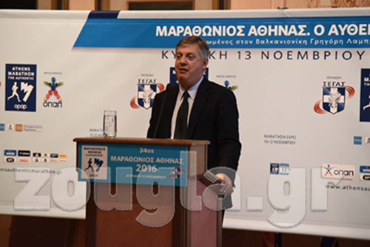 O Γενικός Γραμματέας του ΕΟΤ Δημήτρης Τρυφωνόπουλος από την πλευρά του δήλωσε: «Ο ΕΟΤ στηρίζει τον Μαραθώνιο επί 10 συνεχή έτη και θέλω να συγχαρώ τον ΣΕΓΑΣ για τη διοργάνωση που αποτελεί ένα εμβληματικό γεγονός και συνάμα ένα τουριστικό γεγονός. Τα στοιχεία του ΣΕΓΑΣ δείχνουν την αύξηση τα τελευταία 10 έτη, ενώ από τα στοιχεία φαίνεται ότι το 43% των συμμετεχόντων του 2015, ήρθαν από 100 χώρες. Αποδεδειγμένα οι αγώνες του Μαραθωνίου εστιάζουν στην προβολή της χώρας μας, με σημαντικά αποτελέσματα. Δεν νοείται αθλητικός τουρισμός χωρίς τον Αυθεντικό Μαραθώνιο της Αθήνας και για αυτό εμείς στηρίζουμε τη διοργάνωση», ενώ ο διευθύνων σύμβουλος της ΕΡΤ, Λάμπης Ταγματάρχης εξήγησε ότι η παρουσία του καταδεικνύει την άρρηκτη σχέση της ΕΡΤ με τον Μαραθώνιο και ανακοίνωσε ότι προχωρούν οι διαδικασίες για την ανανέωση της σύμβασης ΕΡΤ- ΣΕΓΑΣ, η οποία λήγει τον Δεκέμβριο, για την τριετία 2017-2019.