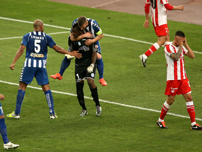91′ Διαμαρτυρήθηκαν για χέρι οι παίκτες του Ολυμπιακου. Ο Τόμας του Ατρόμητου πρωταγωνιστής της φάσης.