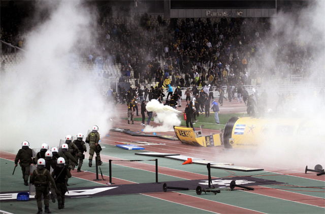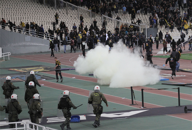 Πάντως, θα πρέπει να σημειωθεί ότι τα επεισόδια μεταφέρθηκαν, μετά τη διακοπή του ματς, στον περιβάλλοντα χώρο του ΟΑΚΑ, όπου εκεί οι οπαδοί της «Ένωσης» συνεπλάκησαν με τους άνδρες των ΜΑΤ.