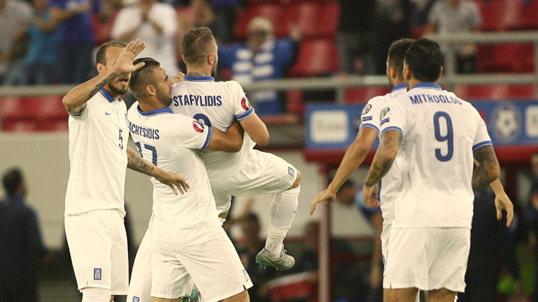 Το ενθουσιώδες ξεκίνημα της Εθνικής μας έφερε γρήγορα το 1-0, καθώς στο 5ο λεπτό οι δύο νεαροί του ΠΑΟΚ άλλαξαν ωραία την μπάλα από τα δεξιά, ο Κίτσιου σέντραρε και ο Σταφυλίδης «νίκησε» με κοντινό αριστερό σουτ τον Κίραλι και, όσο απίστευτο κι αν ακούγεται, σημείωσε το πρώτο εντός έδρας γκολ της Ελλάδας στα προκριματικά.