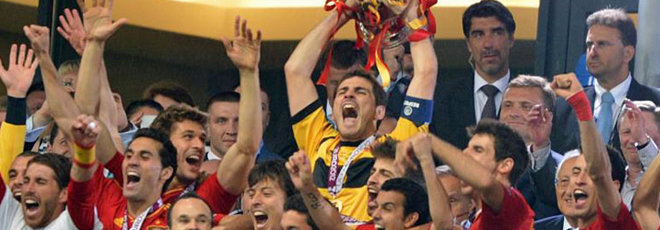 Το συγκρότημα του Ντελ Μπόσκε συνέτριψε με 4-0 την Ιταλία στον τελικό του Euro 2012, που διεξήχθη στο «Ολιμπίνσκι» του Κιέβου, κι έγινε η πρώτη εθνική ομάδα που κατακτά δύο συνεχόμενα ευρωπαϊκά τρόπαια κι ενδιάμεσα το Παγκόσμ