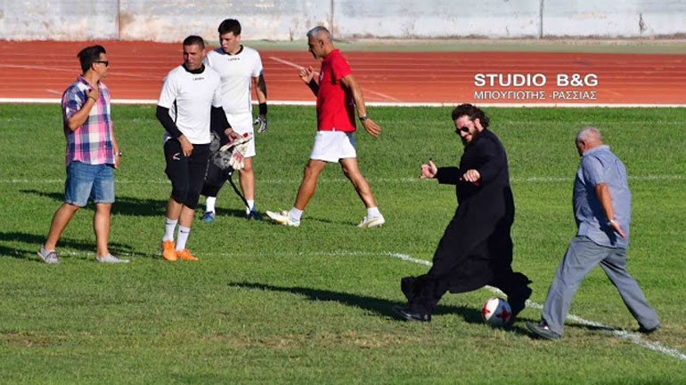 Πιο συγκεκριμένα, μετά τον αγιασμό του συλλόγου ο ιερέας, Κωνσταντίνος Σέρρος σκόραρε από το σημείο του πέναλτι πανηγυρίζοντας δεόντως το γκολ που πέτυχε, υπό τα χειροκροτήματα όσων βρέθηκαν στο δημοτικό αθλητικό κέντρο Ναυπλίου, ενώ ακολούθως (απ)έδειξε σε όλους την υψηλή του τεχνική με την μπάλα στα πόδια.