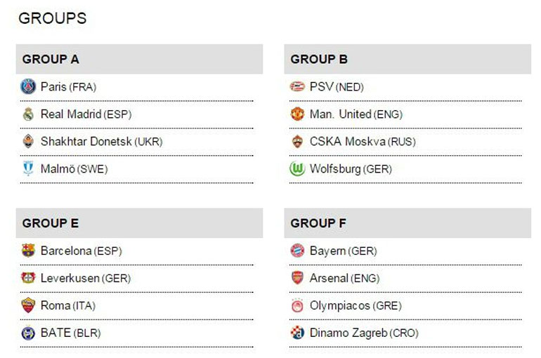 1ος όμιλος: Παρί Σεν Ζερμέν, Ρεαλ Μαδρίτης, Σαχτάρ Ντόνετσκ, Μάλμε