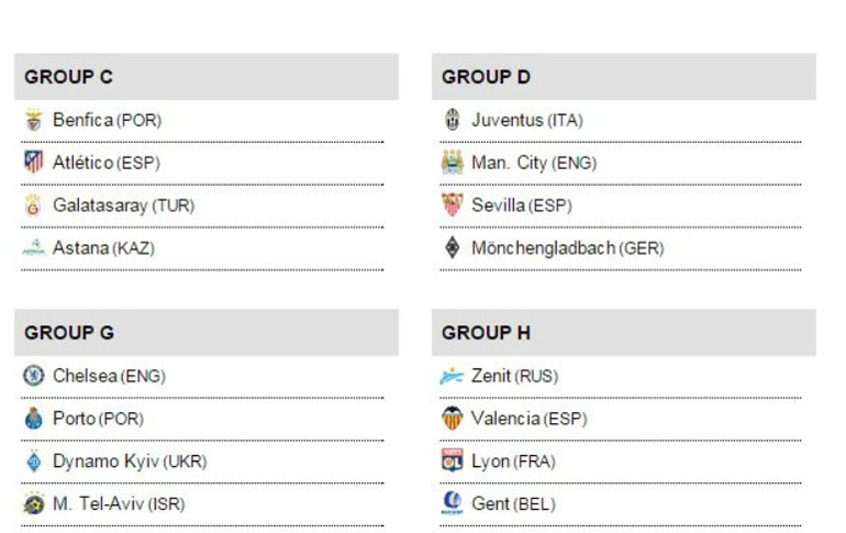3ος όμιλος: Μπενφίκα, Aτλέτικο Μαδρίτης, Γαλατασαράι, Αστάνα