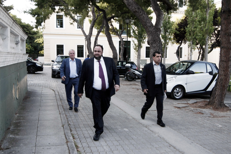 Τον Βαγγέλη Μαρινάκη συνοδεύουν οι δικηγόροι του Βασίλης Δημακόπουλος και Θανάσης Βαρλάμης, ενώ στην Ευελπίδων βρίσκονται o Aντιπρόεδρος της ΠΑΕ Σάββας Θεοδωρίδης και ο υπεύθυνος επικοινωνίας Κώστας Καραπαπάς.