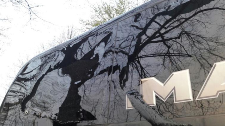 (Οι παίκτες και το τεχνικό επιτελείο της Ντόρτμουντ αποβιβάστηκαν από το πούλμαν μετά το περιστατικό)