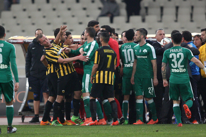 Με γκολ του Ρόναλντ Βάργκας με απευθείας εκτέλεση φάουλ η ΑΕΚ αναδείχθηκε νικήτρια στο ντέρμπι με τον Παναθηναϊκό για την 24η αγωνιστική της Super League. Ο Βενεζουελάνος εκτέλεσε στο 78ο λεπτό και διαμόρφωσε το τελικό ΑΕΚ-Παναθηναϊκός 1-0. Στο τέταρτο λεπτό των καθυστερήσεων αποβλήθηκε ο Μέστο με δεύτερη κίτρινη κάρτα.