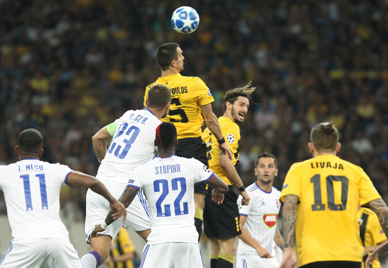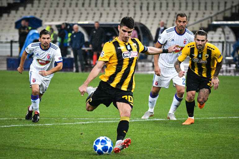 Σε μια φάση χαμηλής επικινδυνότητας, ο Φιόλα έσπρωξε τον Λόπες στην περιοχή. Το πέναλτι καταλόγισε ο Πολωνός διαιτητής Μαρτσίνιακ και ο Πέτρος Μάνταλος στο 48΄ άνοιξε το σκορ ευστοχώντας από τα 11 βήματα.