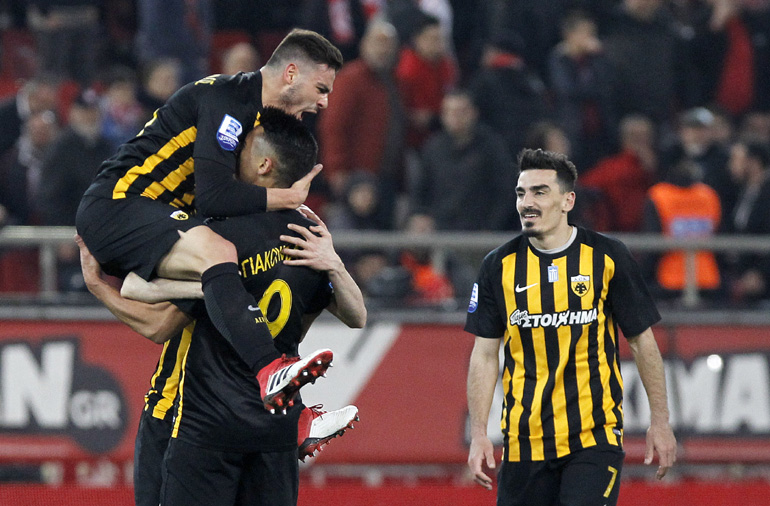 Η ΑΕΚ επικράτησε 2-1 του Ολυμπιακού στο «Γ. Καραϊσκάκης», στο ντέρμπι της 20ης αγωνιστικής της Super League. Η Ένωση βρέθηκε να χάνει 1-0 στο 81’ με το γκολ του Ανσαριφάρντ, όμως έφτασε στη νίκη με τα γκολ των Τσιγκρίνσκι (87’) και Γιακουμάκη (90’+3’). Με 10 παίκτες τελείωσε το ματς ο Ολυμπιακός, λόγω αποβολής του Μποτία στο τελευταίο λεπτό των καθυστερήσεων με δεύτερη κίτρινη κάρτα.