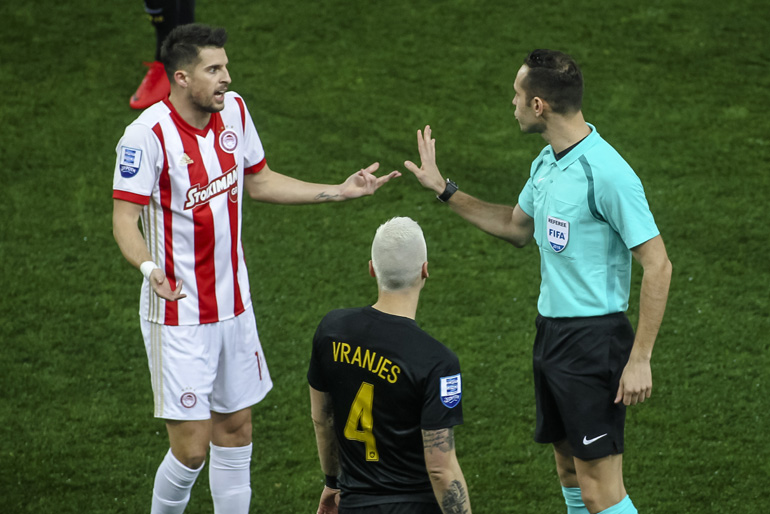 17’ Ο Ολυμπιακός ζήτησε πέναλτι για μαρκάρισμα του Βράνιες στον Μποτία. Ο αμυντικός της ΑΕΚ αγκάλιασε τον Ισπανό αμυντικό του Ολυμπιακού, ρίχνοντάς τον στο έδαφος, ωστόσο ο διαιτητής Παπαπέτρου ζήτησε να συνεχιστεί το ματς.