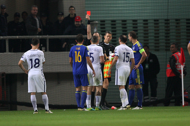 Μετά από ένα επεισοδιακό παιχνίδι με νεύρα, ένταση, αποβολές και επεισόδια στην εξέδρα η Ελλάδα αναδείχθηκε ισόπαλη 1-1 με την Βοσνία στο «Γ. Καραϊσκάκης». Μετά την ολοκλήρωση της 4ης αγωνιστικής η Ελλάδα έφτασε τους 10 βαθμούς και παρέμεινε στη δεύτερη θέση, έχοντας το αβαντάζ των τριών περισσότερων βαθμών από τους Βόσνιους.