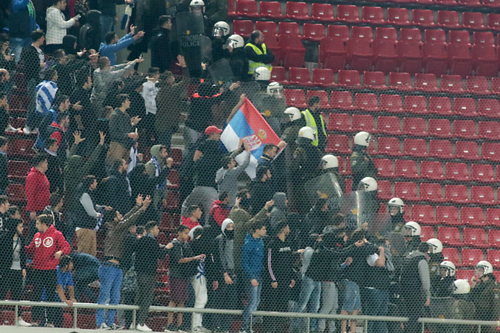 Να σημειωθεί ότι πριν τον αγώνα φίλος της Βοσνίας έπεσε θύμα ξυλοδαρμού, ενώ οι Βόσνιοι οπαδοί πέταξαν μπουκάλια και φωτοβολίδες μετά την επίτευξη του γκολ που σημείωσαν. Παράλληλα, Έλληνας οπαδός πήρε πανό από τους Βόσνιους, ενώ υπήρξαν και επεισόδια οπαδών και με τις δυνάμεις της αστυνομίας.