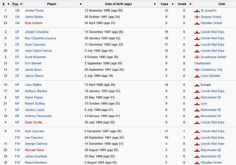 Με στόχο την στελέχωση της εθνικής ομάδας για τα προκριματικά του Ευρωπαϊκού Πρωταθλήματος 2016 η GFA (Ποδοσφαιρική Ομοσπονδία Γιβραλτάρ) ανακοίνωσε τα κριτήρια επιλογής των παικτών. Οι υποψήφιοι παίκτες θα έπρεπε να είναι κάτοχοι βρετανικού διαβατηρίου και να έχουν γεννηθεί στον «βράχο» ή να έχουν γονείς ή παππούδες από το Γιβραλτάρ, ή να έχει φοιτήσει για διάστημα τουλάχιστον πέντε ετών σε σχολείο του.