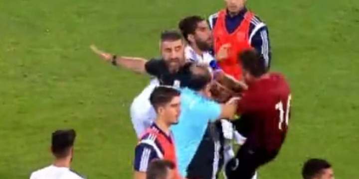 Να σημειωθεί ότι λίγη ώρα μετά τα πράγματα ηρέμησαν, ενώ όπως ενημέρωσε ο διαιτητής αποβλήθηκαν τρεις παίκτες από κάθε ομάδα! Για την Κύπρο, κόκκινη κάρτα αντίκρισαν οι Τασουρής, Φράγκος και Παχίπης.