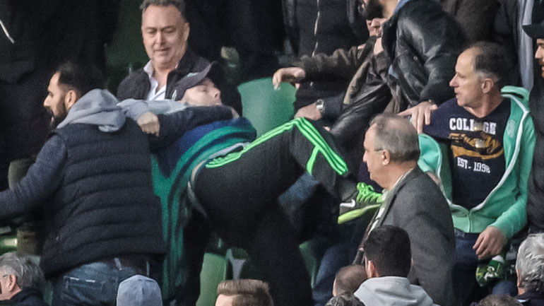 Πιο συγκεκριμένα οπαδοί του Παναθηναϊκού έπαιξαν ξύλο και για περίπου δύο λεπτά η συγκεκριμένη θύρα είχε μετατραπεί σε ρινγκ.