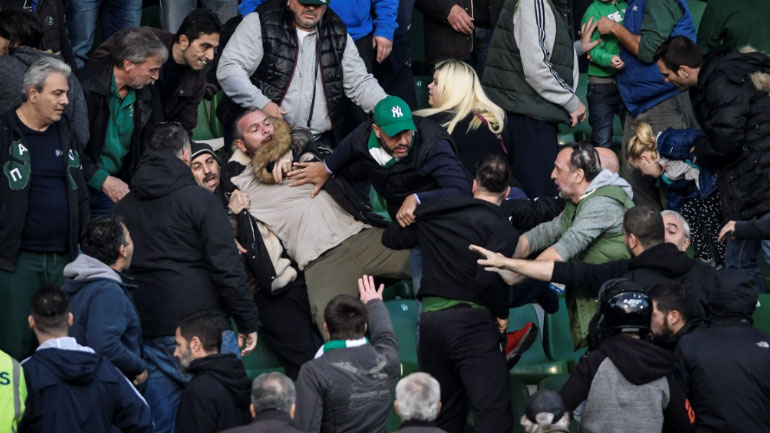 Φίλαθλοι του «τριφυλλιού» επαιξαν ξύλο μεταξύ τους δίπλα ακριβώς από τα επίσημα της Λεωφόρου, πρωταγωνιστώντας σε εικόνες ντροπής, που θα ταξιδέψουν σε κάθε γωνιά του κόσμου, αμαυρώνοντας για ακόμη μία φορά το ελληνικό ποδόσφαιρο.