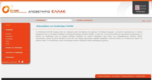 Ένα νέο ψηφιακό αποθετήριο με σημαντικό περιεχόμενο για τον κόσμο της πληροφορικής και του Διαδικτύου δημιουργήθηκε από το Εθνικό Κέντρο Τεκμηρίωσης (EKT) για να παρέχει ανοικτή πρόσβαση σε υλικό της Εταιρείας Ελεύθερου Λογισμικού/Λογισμικού Ανοικτού Κώδικα (ΕΕΛ/ΛΑΚ). Το αποθετήριο Ελεύθερου Λογισμικού/Λογισμικού Ανοικτού Κώδικα περιλαμβάνει περιεχόμενο παραγόμενο μέσα από δράσεις σχετικές με το Ελεύθερο Λογισμικό, τις Ανοικτές Τεχνολογίες και το Ανοικτό Περιεχόμενο, υλικό που έχει παραχθεί από την ΕΕΛ/ΛΑΚ, τα μέλη της, αλλά και από μεμονωμένους δημιουργούς.