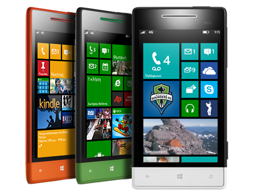 • HTC. Το Windows Phone 8X της HTC διαθέτει κομψή σχεδίαση και έντονο χρώμα για να ταιριάζει με τα Live tiles του Windows Phone. Αυτό το τηλέφωνο φέρνει νέα δεδομένα στην οπτική με 1080p εγγραφή βίντεο, f2.0 άνοιγμα, ImageChip HTC στην κεντρική 8 MPixel κάμερα και εξαιρετικά ευρυγώνιο φακό στο μπροστινό μέρος, που σας επιτρέπει να χωρέσετε μέχρι και τέσσερα άτομα στα πλαίσια της εμπειρίας με το πρόγραμμα Skype. Τα μοντέλα 8X και 8S προσφέρουν μια εκπληκτική εμπειρία μουσικής με Beats Audio ενισχυτές και ενσωματωμένα amps.