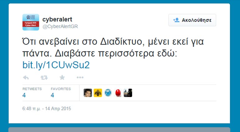 Όπως αναφέρει: «Ότι ανεβαίνει στο Διαδίκτυο, μένει εκεί για πάντα».