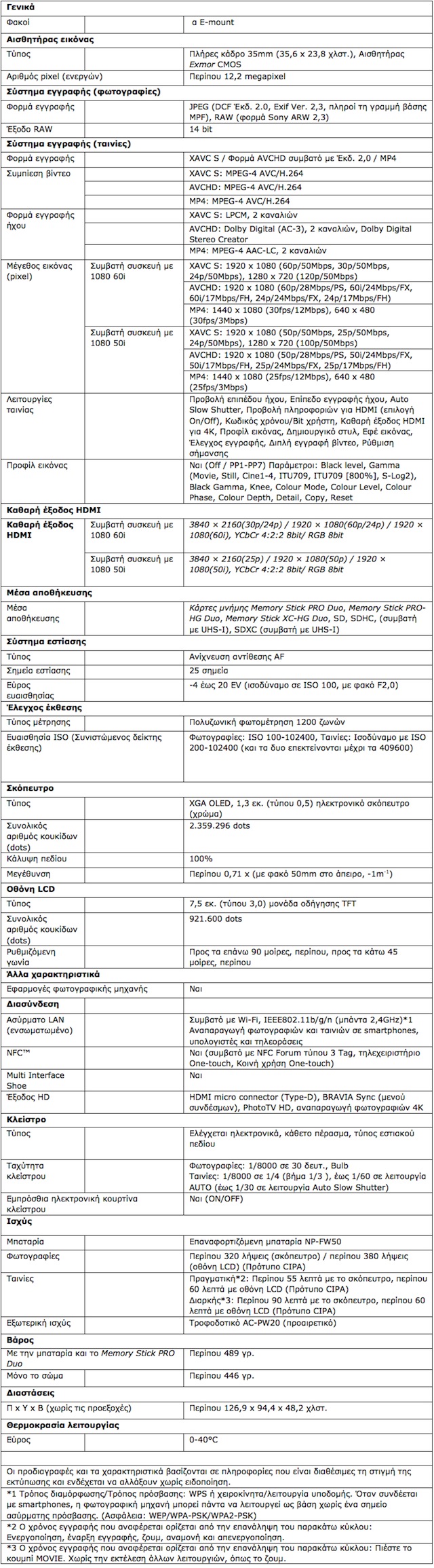Λόγω της πλήρους ανάγνωσης των pixel από ολόκληρο τον full-frame αισθητήρα, είναι αισθητή η απουσία των ανεπιθύμητων «μουαρέ» και των «jaggies», που δεν κολακεύουν τα βίντεο με χαμηλότερη ανάλυση. Οι εκπληκτικά καθαρές εικόνες μπορούν να εγγραφούν σε μια κάρτα μνήμης σε ποιότητα Full HD, με αλγόριθμο κωδικοποίησης «XAVC S» στα 50Mbps, χαρακτηριστικό που εκτιμάται ιδιαιτέρως από τους επαγγελματίες βιντεογράφους.