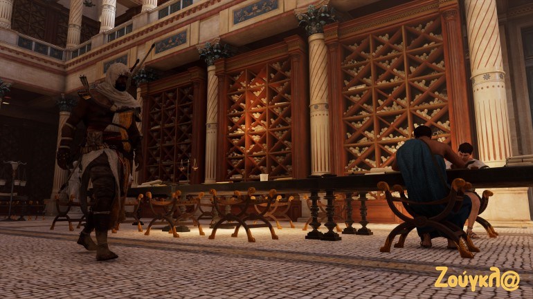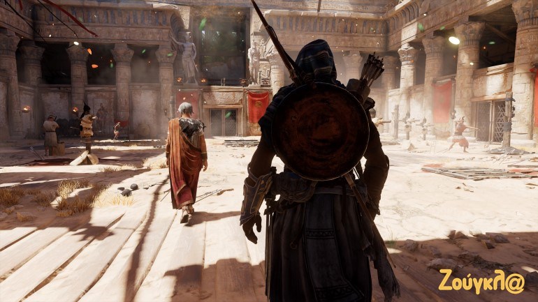 Κάπως έτσι ξεκινά η περιπέτειά σας και αφού ολοκληρώσετε τον μπερδεμένο μεν, ουσιώδη δε, πρόλογο, θα ξεκινήσει το μαγικό σας ταξίδι στην ευρύτερη περιοχή της Αιγύπτου, η οποία σας θέλει να εξερευνάτε περιοχές, όπως την Αλεξάνδρεια, το Μέμφις, την Γκίζα, τη Μεσόγειο και άλλες πολλές σημαντικές -και μη- ιστορικές περιοχές, μέχρι και… το Περιστέρι. Οι χαρακτήρες που θα συναντήσετε αποτελούν ως επί το πλείστον τον απλό “λαουτζίκο” που θα χρειαστεί τη βοήθεια ενός Medjay, αλλά θα βρείτε μπροστά σας κατά τα στάνταρ της σειράς και σημαντικές ιστορικές φιγούρες, όπως την Κλεοπάτρα, τον Ιούλιο Καίσαρα, τον Απολλόδωρο από τη Σικελία και άλλους, που θα σας βοηθήσουν ή θα μπουν εμπόδιο στον ματωμένο δρόμο που ακολουθείτε, αυτόν της εκδίκησης.