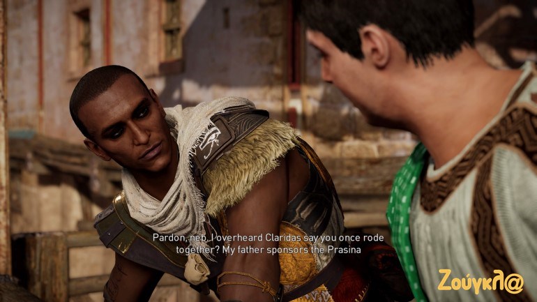 Ένα από τα highlights της ιστορίας, είναι ο ίδιος ο Bayek. Πρόκειται για έναν άνθρωπο που μετριέται από τις αξίες του, θρήσκος, με χιούμορ, νεύρα, και ευτυχώς με περισσότερα επίπεδα από άλλους πρωταγωνιστές της σειράς. Οι σχέσεις του, ακόμα και με τους NPCs που συναντά στα side quests έχουν ενδιαφέρον και ποικιλία και αποτελούν την ενέργεια του τίτλου, που καταφέρνει να δώσει κίνητρο στον παίκτη για να προχωρήσει στις επόμενες αποστολές. Θα λέγαμε ότι καταφέρνει να βρεθεί άνετα στην τριάδα με τους καλύτερους Assassins και αυτό λέει πολλά από μόνο του.