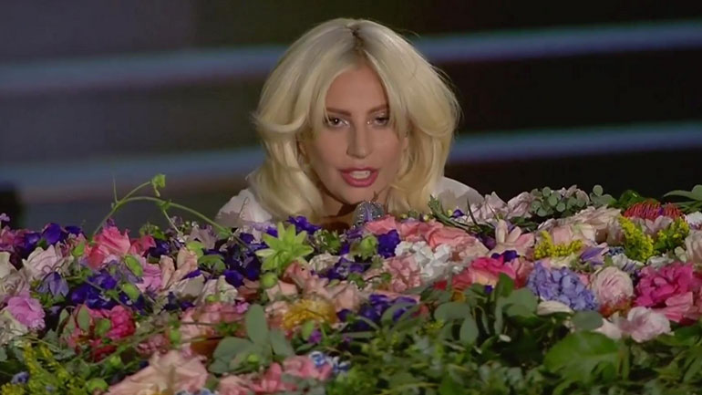Aνάμεσα στις πολλές εκπλήξεις της βραδιάς κυριάρχησε η εμφάνιση της Lady Gaga, η οποία τραγούδησε το «Imagine» του Τζον Λένον.