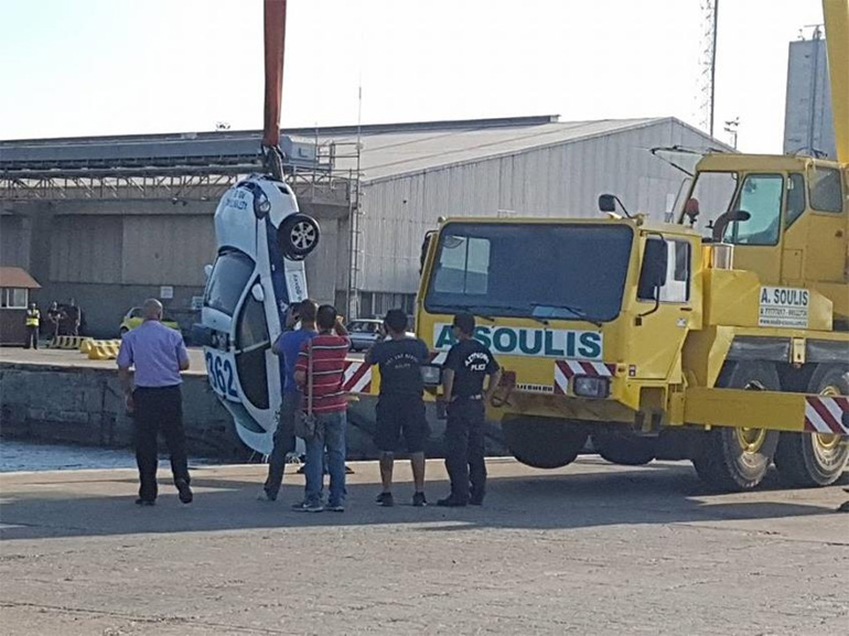 Για την ανάσυρση του περιπολικού από τη θάλασσα επιστρατεύτηκε γερανός, ενώ η αστυνομία διερευνά το περιστατικό.