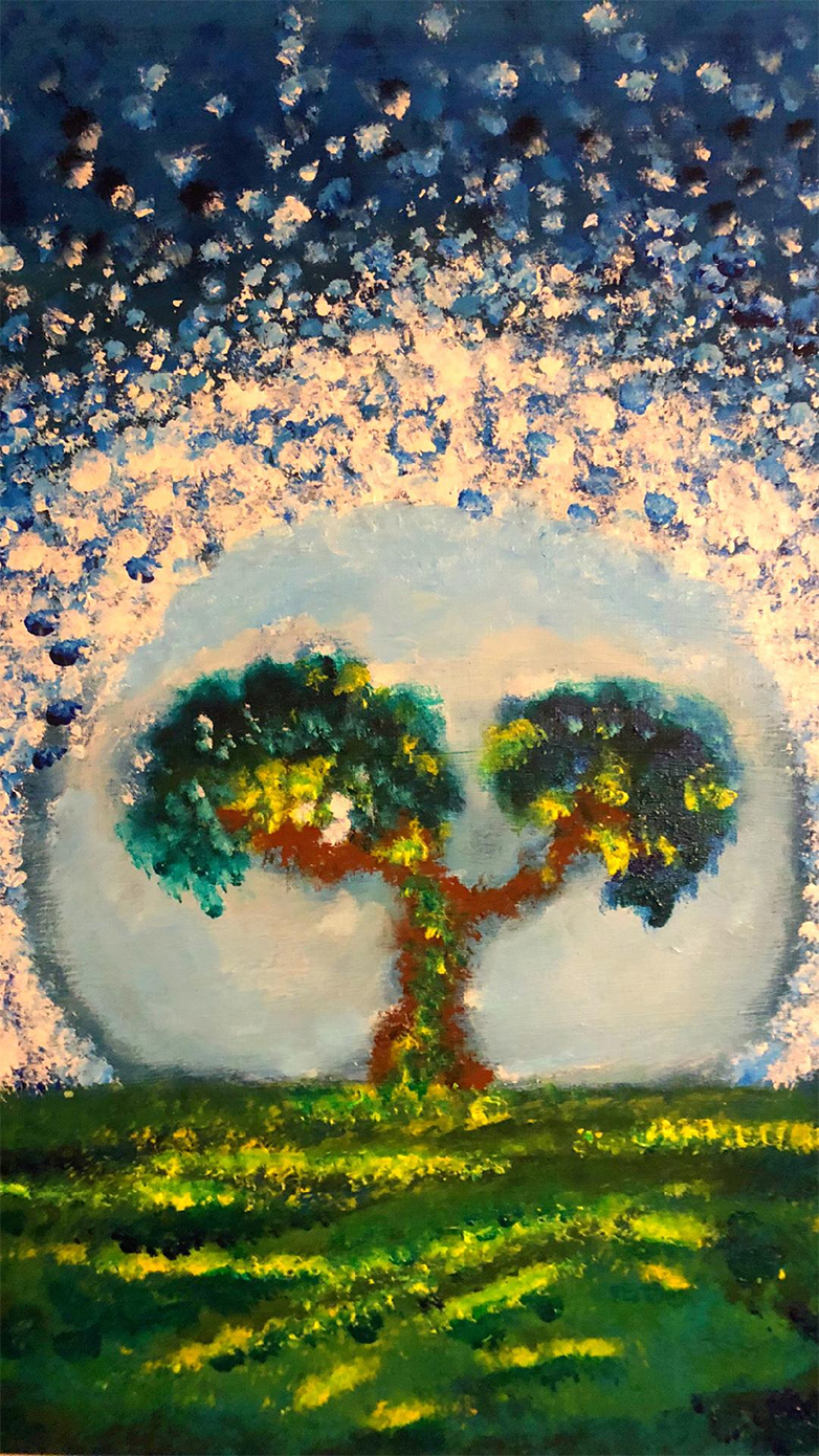 Όπως αναφέρει η επιμελήτρια της έκθεσης Ίρις Κρητικού: «Τα δέντρα της που ονειρεύονται άλλα δέντρα, κυριευμένα από τα χρώματα και τα αισθήματα που σταδιακά αποκτούν, γίνονται αυθύπαρκτα σώματα, φωτοβόλα πυροτεχνήματα, ιερός χορός. Αναζητώντας το υπερβατικό ουράνιο τόξο της καρδιάς και του νου, οι νέες ετούτες συμβολικές σημάνσεις εξερευνούν τη μαγεία του φυσικού κόσμου, το κόχλασμα της άγριας και ανεξάντλητης φυσικής ομορφιάς και τη συμβολική ερμηνευτική της που ελλοχεύει […]