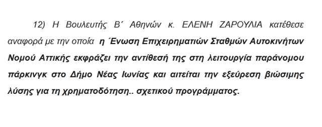 Η κα Ζαρούλια κατέθεσε αναφορά προς τους Υπουργούς Ανάπτυξης, Εργασίας, Εσωτερικών και