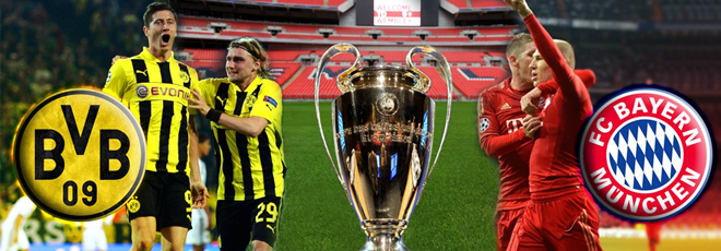 Στο «Γουέμπλεϊ» του Λονδίνου απόψε στις 21.45 (ΝΕΤ, NOVA 1), η Μπάγερν Μονάχου και η Μπορούσια Ντόρτμουντ κυνηγούν τον τίτλο της πρωταθλήτριας Ευρώπης. Βαυαροί και Βεστφαλοί προσγείωσαν απότομα τις βλέψεις των Ισπανών της Ρεάλ Μαδρίτης και της Μπαρτσελόνα, και μετέτρεψαν τον τελικό της κορυφαίας διασυλλογικής διοργάνωσης της Ευρώπης σε ντέρμπι της Μπουντσελίγκα.