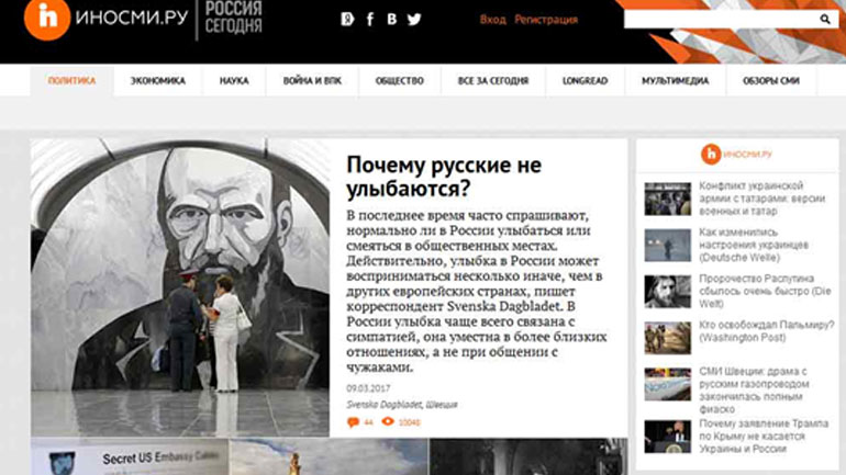Υπάρχει ένας ρωσικός ιστότοπος, ο «inosmi» = ξένα ΜΜΕ, που μεταφράζει τα προπαγανδιστικά ρωσοφοβικά άρθρα των δυτικών Μέσων στα ρωσικά. Τα άρθρα αυτά τα δημοσιεύει, ώστε οι Ρώσοι να δουν με τα ίδια τους τα μάτια πόσα ψέματα λένε και γράφονται στα δυτικά Μέσα καθημερινά για τους Ρώσους.