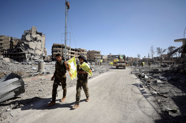 Οι αντικαθεστωτικοί αντάρτες των Συριακών Δημοκρατικών Δυνάμεων SDF, συμμαχίας μεταξύ Κούρδων και Αράβων που υποστηρίζεται από τις δυνάμεις των ΗΠΑ, κατέλαβαν τη Ράκα, εκδιώκοντας τους τζιχαντιστές.