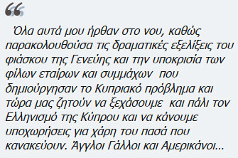 Το Κυπριακό μου κόστισε μόλις τέσσερις μήνες παραπάνω θητεία. Σε άλλους φυσικά έχει κοστίσει τη ζωή και σε άλλους την περιουσία.