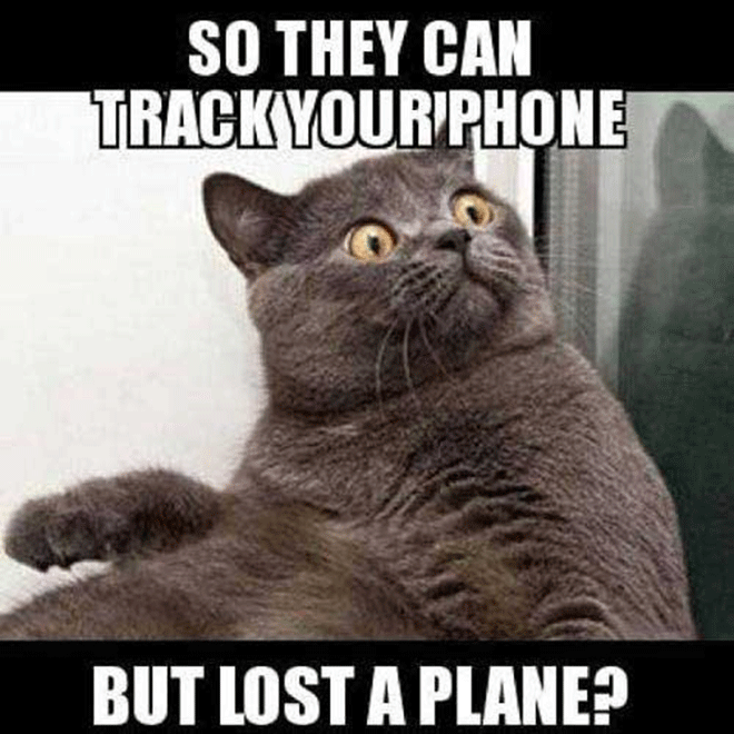 Στο «μουτροβιβλίο» κυκλοφορεί εδώ και αρκετές ημέρες φωτογραφία έκπληκτης γάτας με λεζάντα: «Λοιπόν εκείνοι που μπορούν και παρακολουθούν το τηλέφωνό σου, έχουν χάσει ένα αεροπλάνο;»