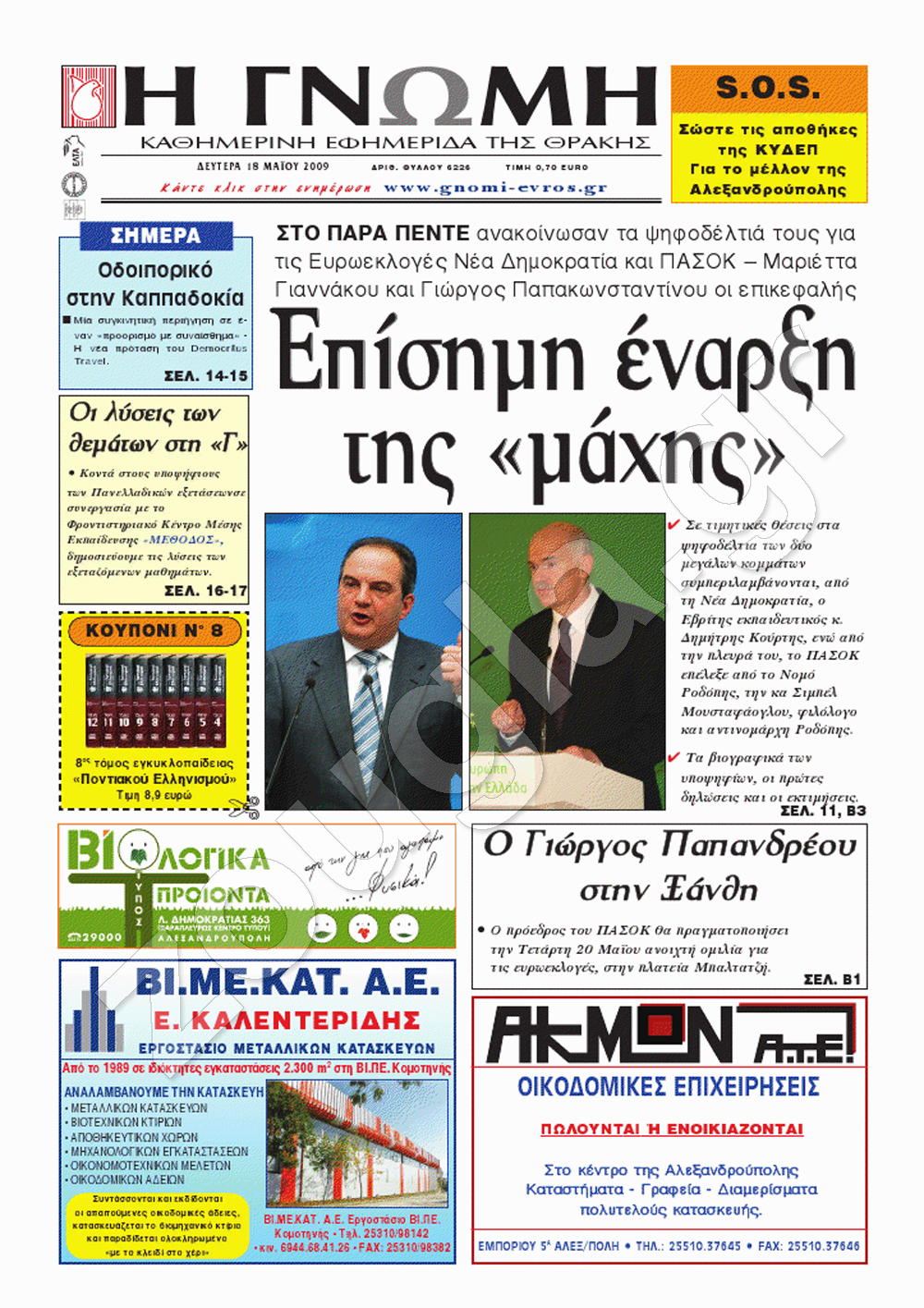ΗΜΕΡΟΜΗΝΙΑ ΜΑΘΗΜΑ Παρασκευή 15 Μαΐου 2009 ΝΕΟΕΛΛΗΝΙΚΗ ΓΛΩΣΣΑ (ΓΕΝΙΚΗΣ ΠΑΙΔΕΙΑΣ) Δευτέρα 18 Μαΐου 2009 -ΒΙΟΛΟΓΙΑ (ΓΕΝΙΚΗΣ ΠΑΙΔΕΙΑΣ)-ΦΥΣΙΚΗ (ΓΕΝΙΚΗΣ ΠΑΙΔΕΙΑΣ)-ΜΑΘΗΜΑΤΙΚΑ ΚΑΙ ΣΤΟΙΧΕΙΑ ΣΤΑΤΙΣΤΙΚΗΣ (ΓΕΝΙΚΗΣ ΠΑΙΔΕΙΑΣ)-ΙΣΤΟΡΙΑ (ΓΕΝΙΚΗΣ ΠΑΙΔΕΙΑΣ) Τετάρτη 20 Μαΐου 2009 -ΝΕΟΕΛΛΗΝΙΚΗ ΛΟΓΟΤΕΧΝΙΑ (ΘΕΩΡΗΤΙΚΗΣ ΚΑΤ/ΝΣΗΣ)-ΜΑΘΗΜΑΤΙΚΑ (ΘΕΤΙΚΗΣ ΚΑΤΕΥΘΥΝΣΗΣ & ΤΕΧΝΟΛΟΓΙΚΗΣ ΚΑΤ/ΝΣΗΣ ΚΑΙ ΤΩΝ ΔΥΟ ΚΥΚΛΩΝ) Παρασκευή 22 Μαΐου 2009 -ΙΣΤΟΡΙΑ (ΘΕΩΡΗΤΙΚΗΣ ΚΑΤ/ΝΣΗΣ)-ΒΙΟΛΟΓΙΑ (ΘΕΤΙΚΗΣ ΚΑΤΕΥΘΥΝΣΗΣ)-ΧΗΜΕΙΑ – ΒΙΟΧΗΜΕΙΑ (ΘΕΤΙΚΗΣ ΚΑΤΕΥΘΥΝΣΗΣ-ΤΕΧΝΟΛΟΓΙΚΗΣ ΚΑΤ/ΝΣΗΣ – […]