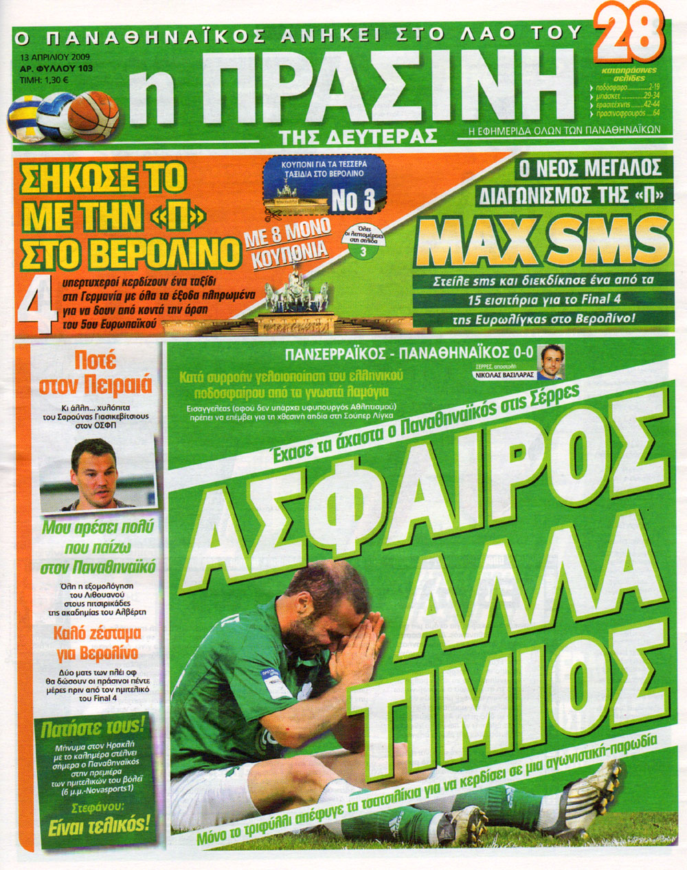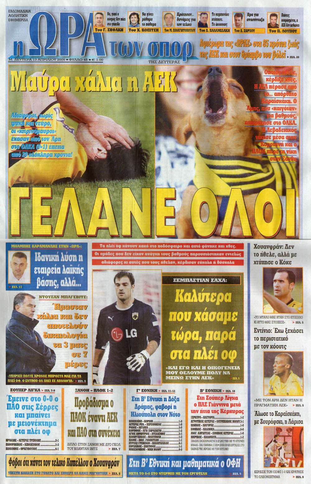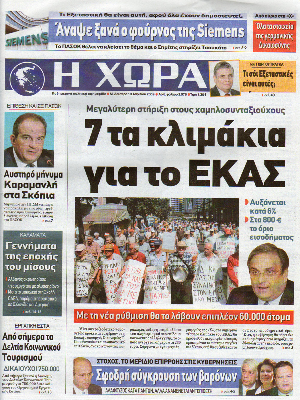 Την Κυριακή 12 Απριλίου 2009, πρώτη στην προτίμηση του αναγνωστικού κοινού, στην Αθήνα και τον Πειραιά, ήρθε η εφημερίδα Κυριακάτικη Ελευθεροτυπία. Δεύτερη ήταν η Καθημερινή, ακολουθεί...