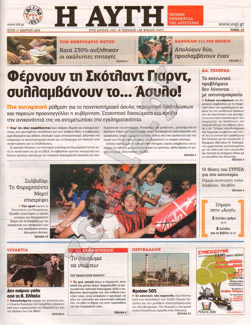 17/03/2009 | 09:20 Κατέλαβαν το κτίριο της Γενικής Γραμματείας Εμπορίου Μέλη του ΠΑΜΕ κατέλαβαν λίγο μετά τις 05:00 τα ξημερώματα το κτίριο της Γενικής Γραμματείας Εμπορίου, που βρίσκεται στην πλατεία Κάνιγγος. Η κατάληψη γίνεται στο πλαίσιο του σημερινού συλλαλητηρίου που θα γίνει το απόγευμα...
