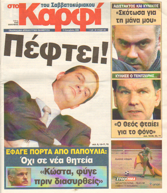 Η κυκλοφορία των εφημερίδων την Παρασκευή 12 Δεκεμβρίου 2008