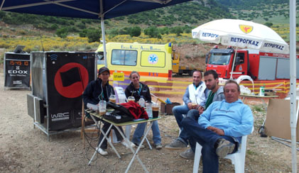 Μόλις έφυγε το τελευταίο αυτοκίνητο από την αφετηρία της ειδικής Κεφαλάρι 2 περιμέναμε το ουραγό στον οποίο παραδώσαμε όλες τις καταστάσεις Σ.Ε.Χ. και ΑΦΕΤΗΡΙΑΣ. Από την στιγμή εκείνη οι χρονομέτρες(Σ.Ε.Χ. – ΑΦΕΤΗΡΙΑΣ) μπορούσαν να μαζέψουν τα υλικά τους ( ρονόμετρα πινακίδες κλπ). Όμως ο Υπ. Ασφαλείας ο Τομεάρχης και τα αυτοκίνητα ασφαλείας που ευρίσκονταν στην αφετηρία της ειδικής παραμένουν στις θέσεις τους μέχρι να βγει το τελευταίο αγωνιστικό αυτοκίνητο και ο ουραγός από το STOP. Τότε και μόνο τότε τελειώνει η ειδική. Τα υλικά του Σ.Ε.Χ. και της ΑΦΕΤΗΡΙΑΣ θα έπρεπε να φορτωθούν στοVANτης οργάνωσης, το οποίο όμως ήταν στο STOP. Άρα λοιπόν όπως καταλαβαίνετε θα έπρεπε πρώτα να τελειώσει η ειδική διαδρομή να βγουν όλα τα αγωνιστικά αυτοκίνητα και ο ουραγός από το STOPνα μαζέψουν και να φορτώσουν όλα τα υλικά τους στο VANνα ξεκινήσει το VANαπό το STOP της ειδικής και μετά από 25 χλμ περίπου να έρθει στο Σ.Ε.Χ. προκειμένου να φορτώσουμε όλοι μαζί τα υλικά που ευρίσκοντο εκεί.