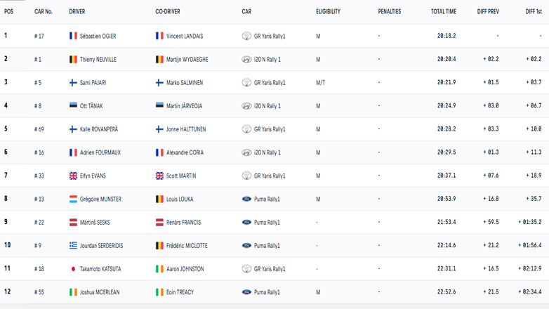Ο Ogier έδειξε από την χθεσινή Υπερειδική τις προθέσεις του να πρωταγωνιστήσει στο φετινό EKO Rally Acropolis και σήμερα συνεχίζει απτόητος. Με το Toyota Yaris Rally 1 του, ήταν ο ταχύτερος στην πρώτη Ε.Δ. της ημέρας, καθώς κατάφερε να τρέξει τα 26.76χλμ. σε χρόνο 19:00.1. Δεύτερος με μόλις  +00.7 δευτ. διαφορά ο Pajari (επίσης Toyota) και τρίτος με χρόνο 19.01.2, ο Neuville της Hyundai.