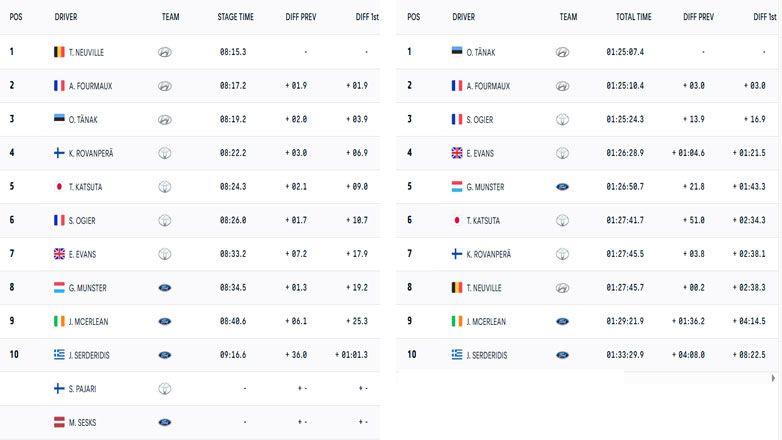 Στο αγωνιστικό κομμάτι τώρα, ο Neuville που είχε κακή μέρα με αρκετά κλαταρίσματα και δυσκολίες, κατάφερε να κάνει την Ε.Δ. Ελάτεια, ταχύτερα από όλους και πιο συγκεκριμένα σε 8:15.3, με τον εξαιρετικό σήμερα Fourmaux να ακολουθεί στο +1.3δευτ. Την ταχύτερη τριάδα της Ε.Δ. συμπληρώνει ένα δευτ. πίσω ο Tanak, ο οποίος ηγείται της γενικής κατάταξης του αγώνα, μπροστά από τον Fourmaux (+3.0 δευτ.)