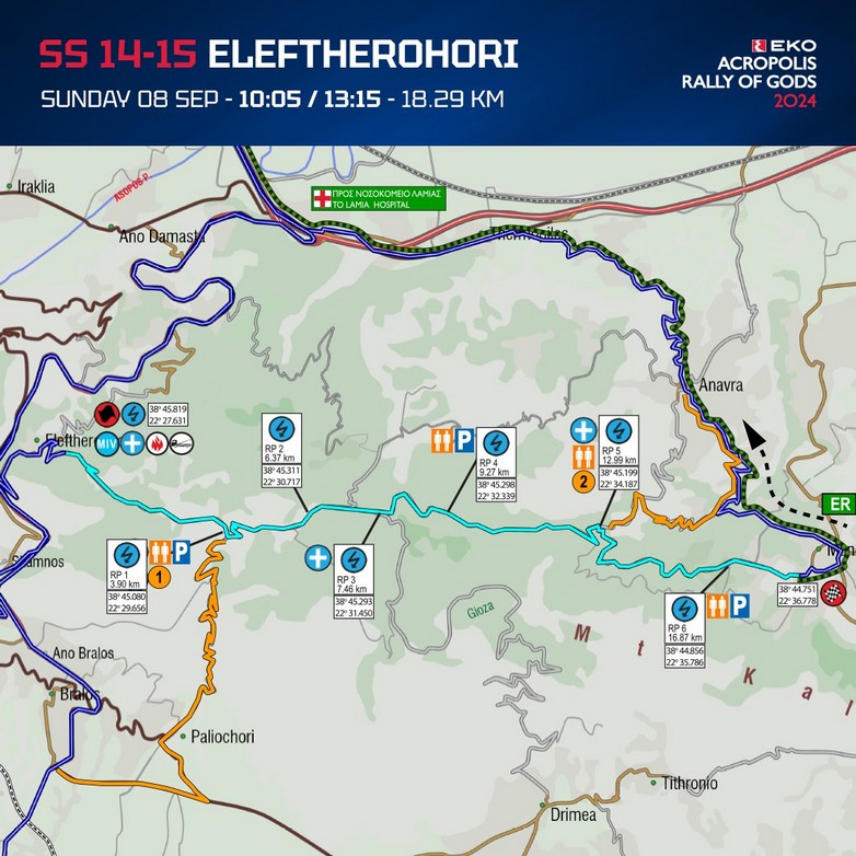 Ελευθεροχώρι: Μήκος 18.29χλμ. 1ο πέρασμα: 10:15 – WOLF Power Stage 13:15