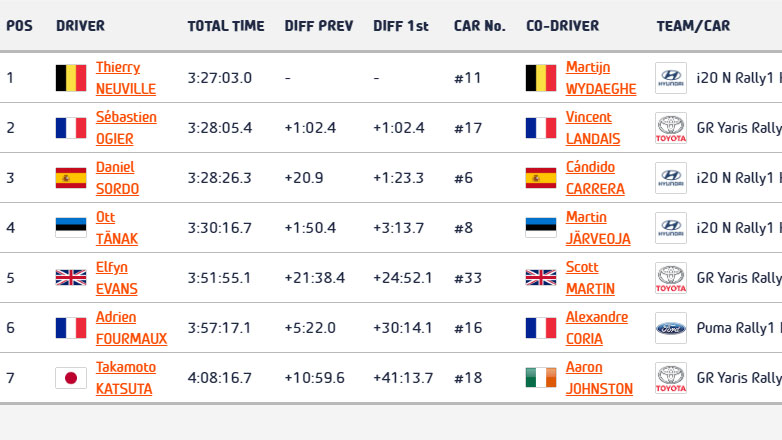 Πλέον με μία Ε.Δ. να απομένει, το χάσμα του ενός λεπτού ανάμεσα στον Neuville και τον δεύτερο Ogier δεν φαίνεται να κλείνει. Η πρώτη ημέρα κόστισε στον Ogier ο οποίος το πάλεψε με νύχια και με δόντια για να επανέλθει, όμως ο αλάνθαστος Neuville έχοντας αποκτήσει διαφορά ασφαλείας, οδήγησε αμυντικά και με στρατηγική, εξασφαλίζοντας την 1η θέση.