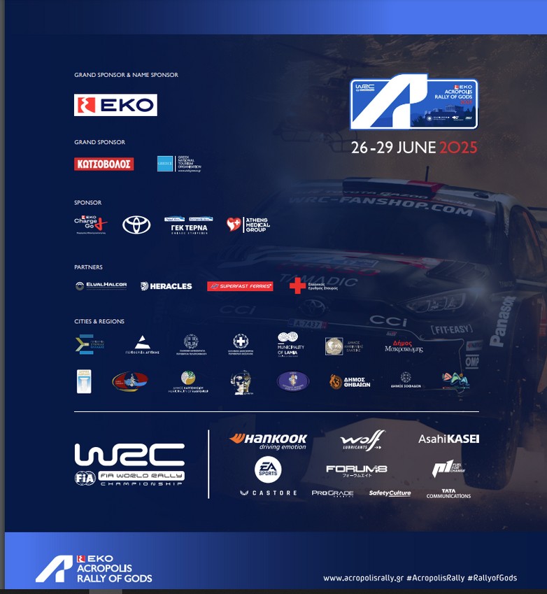 Το EKO Rally Acropolis, είναι ο έβδομος γύρος του Παγκόσμιου Πρωταθλήματος Ράλλυ της FIA και φέτος επιστρέφει τον παραδοσιακό μήνα. Ετοιμασθείτε όσοι αγαπάτε τα ράλλυ και προγραμματίστε τις άδειές σας για να παρακολουθήσετε πιο ευχάριστα το μεγάλο μας αγώνα που θα γίνει από τις 26 έως τις 29 Ιουνίου 2025.