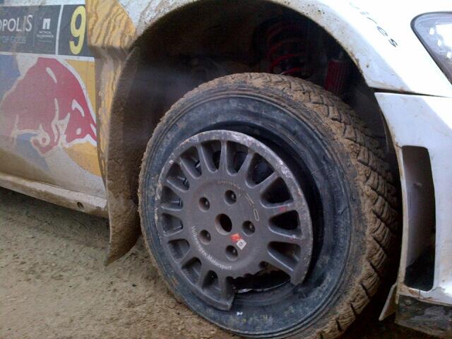 Ένα από τα αμέτρητα σκασμένα ελαστικά. Στη φωτό, και με σπασμένη ζάντα!