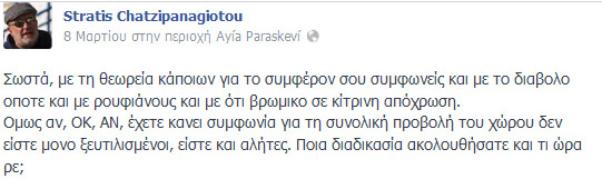 Τι έγραψε στο Facebook ο Στράτης Χατζηπαναγιώτου