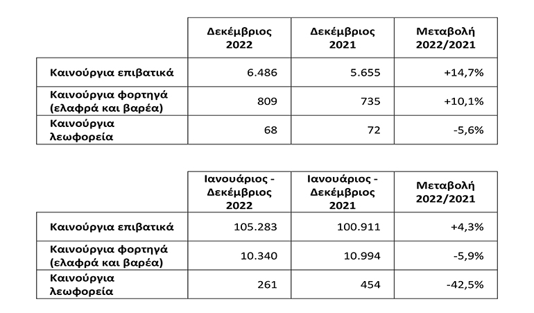 Μπορεί η αύξηση στις ταξινομήσεις των αυτοκινήτων τον τελευταίο μήνα του 2022 να μην ήταν θεαματική ωστόσο ήταν μια γερή ανάσα για τους αντιπροσώπους. Τον Δεκέμβριο φέτος ταξινομήθηκαν 6.486 έναντι 5.655 τον αντίστοιχο μήνα του 2021. Η αύξηση έφθασε στο 14.7%.